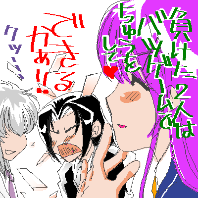 神子「じゃ、勝った人のいう事を聞いてねv負けた二人は、ちゅうv」